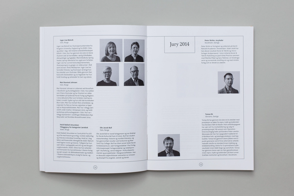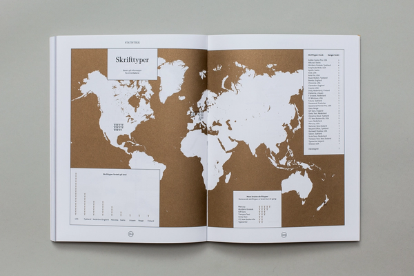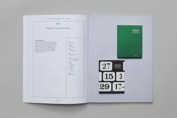 For the 2014 edition all the awarded books were studied in terms of the geographic origin of the paper, printer and typefaces used. The data was collected and presented to expose the current state of the book publishing industry in Norway. The catalogue was produced entirely using Norwegian components. Almost.