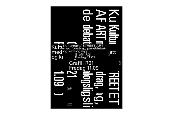 Street Art – Posters in Oslo 2005–2015 was an exhibition at Grafill’s R21 Gallery initiated by All Tomorrow’s, Bergqvist’s former studio. These days posters are often seen as small images online rather than as physical objects in the streets. The purpose of the exhibition was to showcase 10 years of prolific poster design in Oslo, with posters in their original size and almost in their original context.